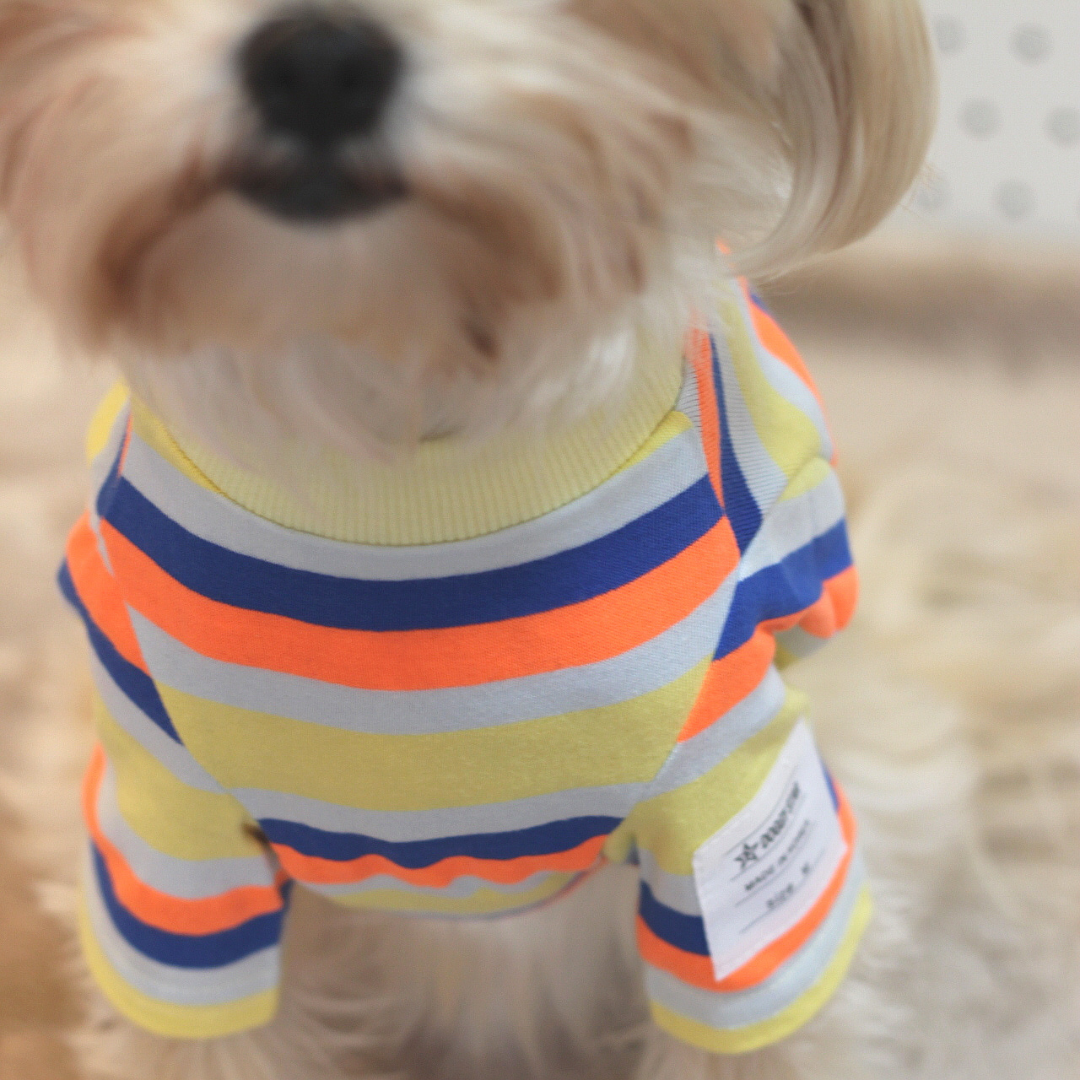 A summer T-shirt with bright candy stripes in 100% cotton. Fabric and sewing made in Korea