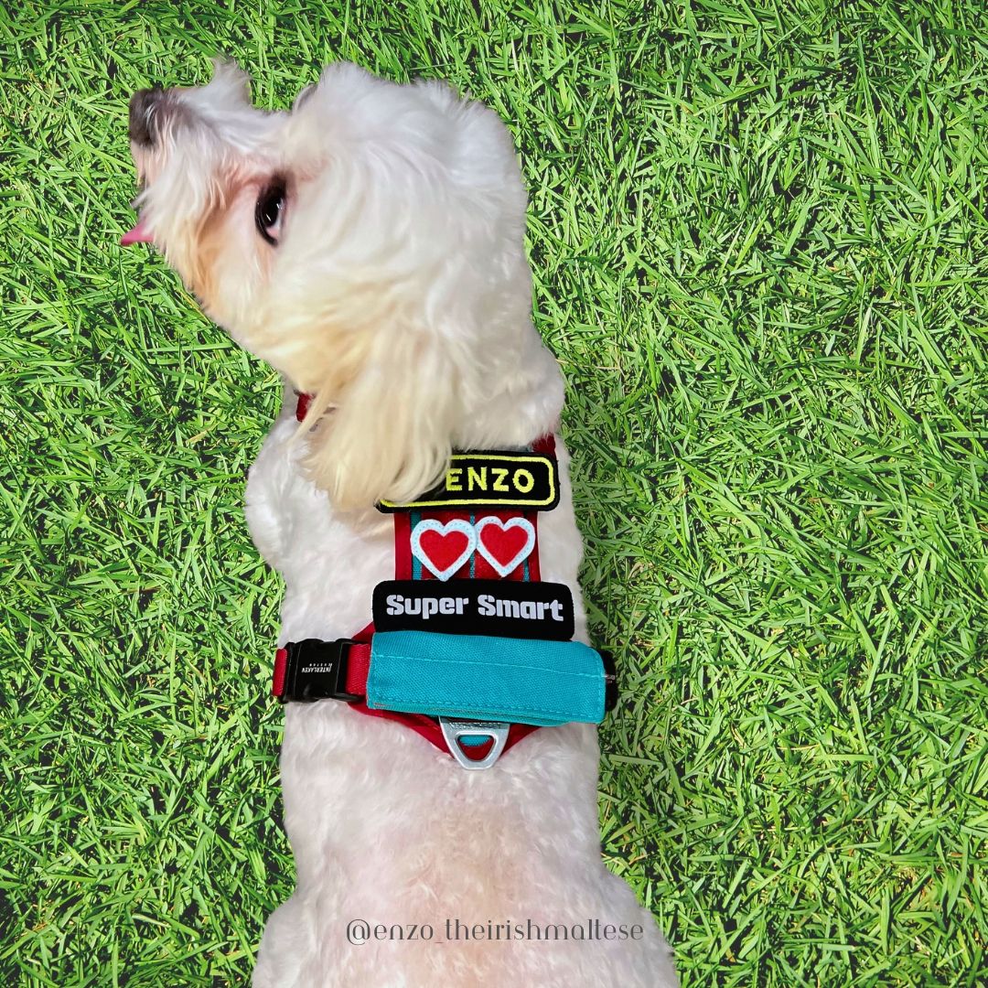 Custom velcro patches made of felt with soft filling that are designed for customising your INTERLAKEN harness and leash