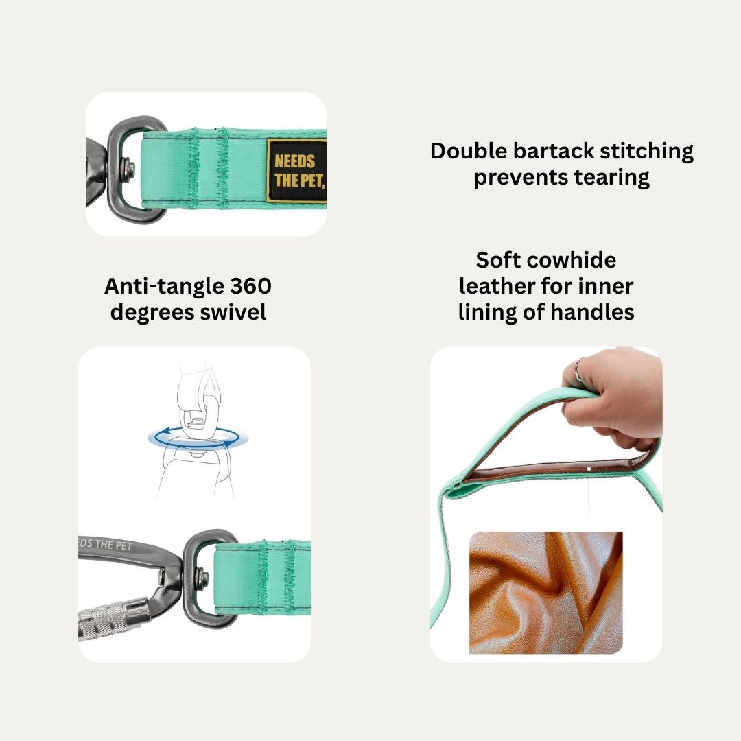 Withstanding up to 300kg pulling force, the extra traffic handle and clips with secure lock enhances pet safety