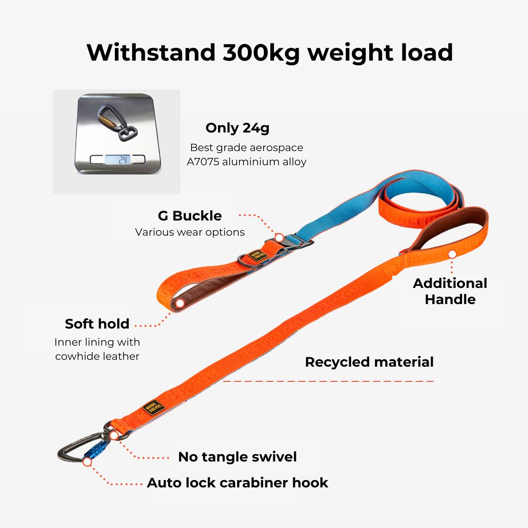 Super light handsfree leash (only 94g) with extra hand grip and environmentally friendly using recycled materials