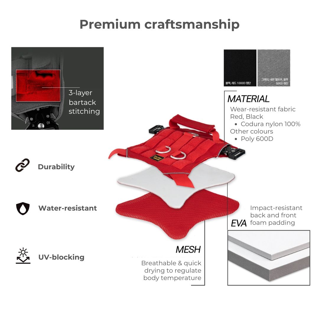 Impact-resistant and durable performance harness made for all-day adventures Strength tested for up to 120kg pulling force, this harness is perfect for big dogs including strong pullers