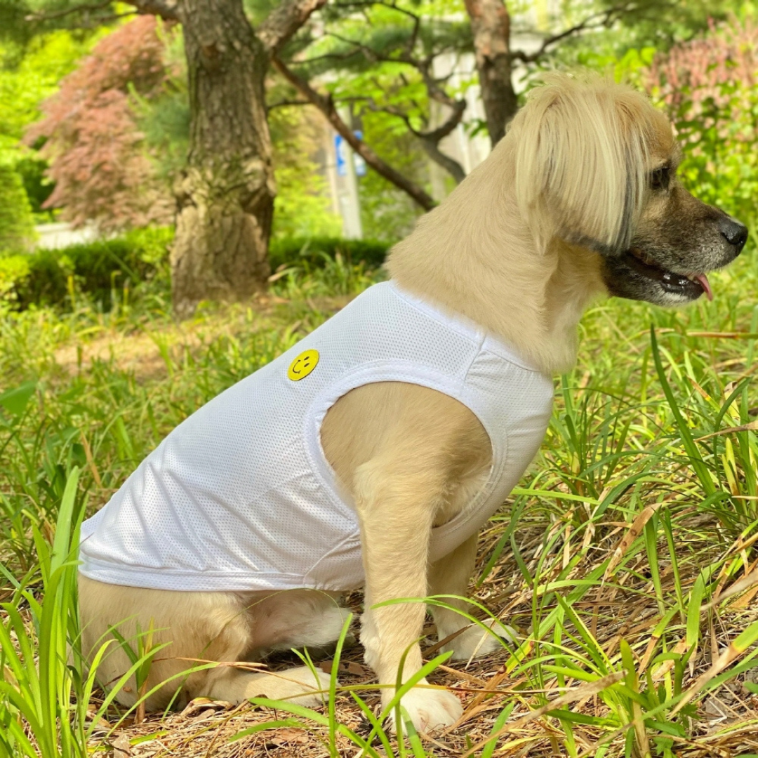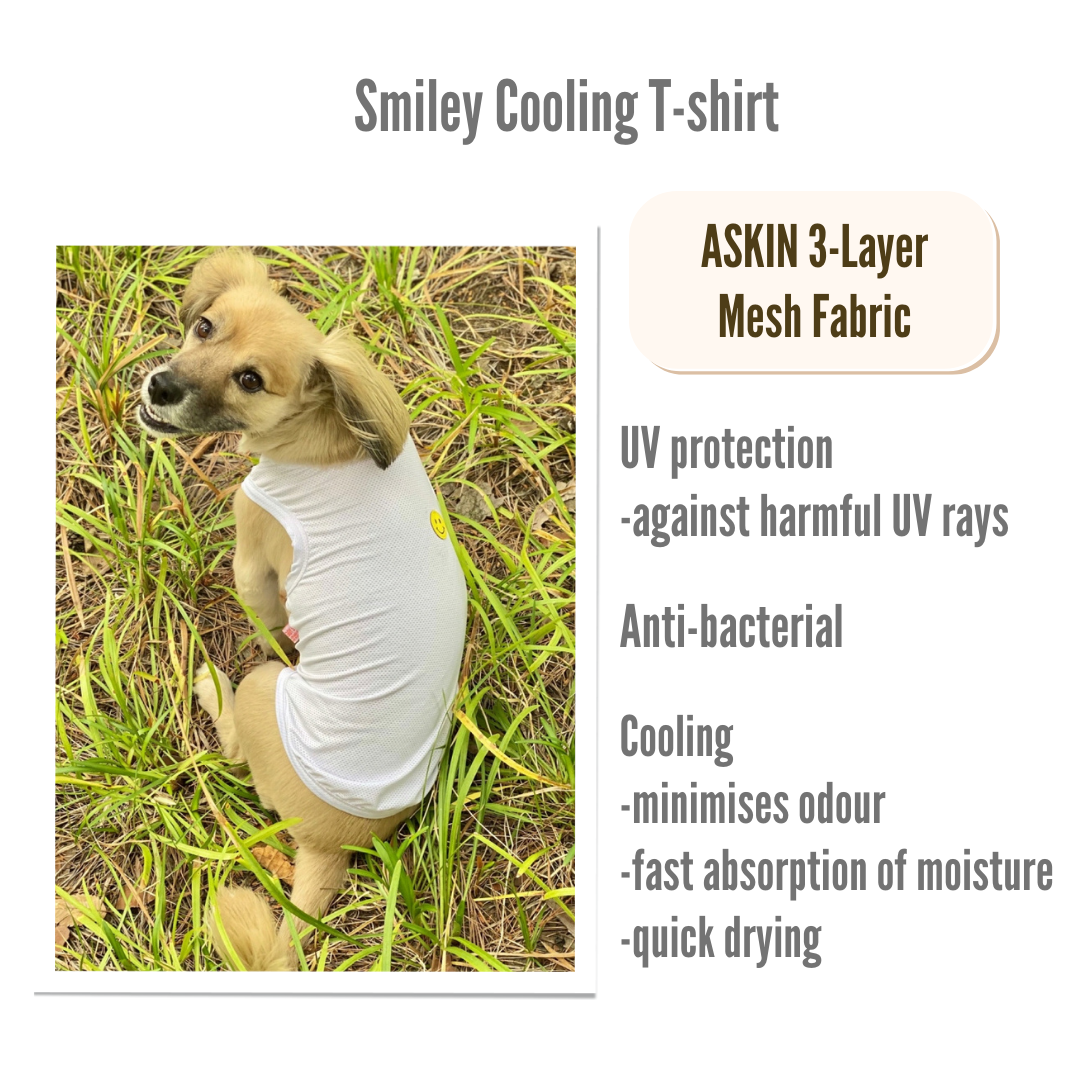 The Smiley badge and neon colours of this cooling T-shirt will brighten up your pet's day!